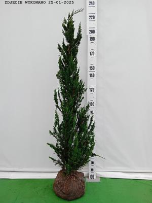 Zimozielony cyprysik o luźnym. kolumnowym pokroju. Konary rozpostarte z uniesionymi końcami. Pędy wzniesione. mocne i grube. skręcone. paprociowate. Gałązki krótkie. gęsto okalające oś pędu. Łuski malutkie. ciemnozielone. pokryte niebieskawym woskowym nal