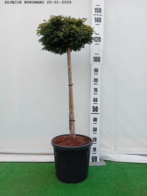 Zimozielony wolnorosnący cyprysik o płaskokulistym pokroju. dobrze zagęszczony. Pędy nitkowate. proste. Ulistnienie łuskowate. złocistożółte do jasnozielonożółtego. Po 10 latach dorasta do 0.6 m wysokości i 0.7 m średnicy. Nadaje się mieszanych kompozycji