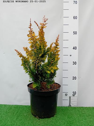 Zimozielony cyprys o szerokostożkowym pokroju. Po 10 latach osiąga 1.5 m wysokości. Posiada łuskowate. zielone ulistnienie. Doskonały do pojedynczych nasadzeń. na wrzosowiska i do ogrodów japońskich.