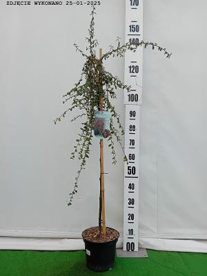 Zimozielona karłowa irga z leżącymi na ziemi długimi. wygiętymi pędami. Ozdobna w intensywnie błyszczące ciemnozielone liście oraz białe. liczne kwiaty i jaskrawoczerwone kuliste owoce. utrzymujące się do wiosny. Dorasta do 0.6 m wysokości. Jest doskonałą
