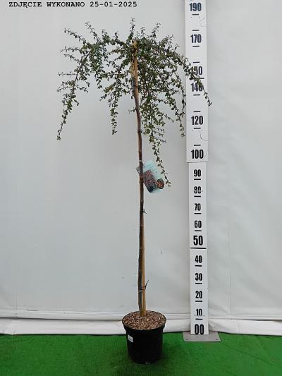 Zimozielona karłowa irga z leżącymi na ziemi długimi. wygiętymi pędami. Ozdobna w intensywnie błyszczące ciemnozielone liście oraz białe. liczne kwiaty i jaskrawoczerwone kuliste owoce. utrzymujące się do wiosny. Dorasta do 0.6 m wysokości. Jest doskonałą
