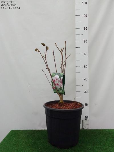 kwiaty białe. półpełne z wyraźnym. czerwonym żyłkowaniem na płatkach