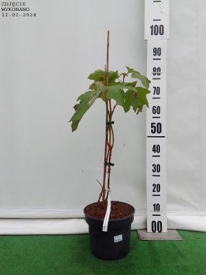 krzew dorastający do 1.8 m wys. liście głęboko powcinane. przebarwiające się jesienią na odcienie brązu. czerwieni i fioletu