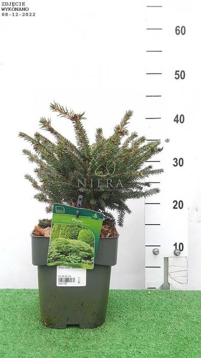 Karłowy świerk pospolity o płaskokulistym kształcie. Osiąga 1.5 m średnicy przy 1 m wysokości. Ozdobny w cienkie. giętkie pędy i zielone. krótkie. miękkie igły. Polecany na wrzosowiska. skalniaki. do pojemników i małych ogrodów.