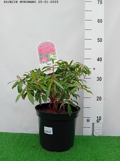 Zimozielony. wolnorosnący pieris. Dorasta po 10 latach do 1 m średnicy. Ozdobny w ciemnozielone. błyszczące. lancetowate liście. wiosną intensywnie czerwonobrązowe lub jaskrawoczerwone z łososiowym odcieniem. później przechodzące do zielonych oraz białe k