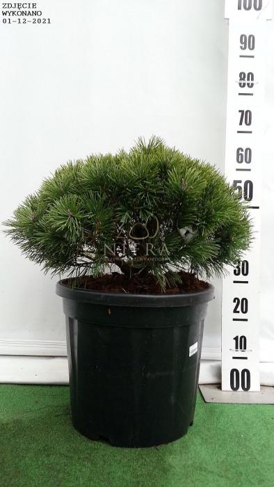Bardzo wolnorosnąca sosna kosodrzewina o kulistym pokroju. Po 10 latach dorasta do 0.5 m wysokości i szerokości. Posiada zielononiebieskie. ciemne igły. zebrane po dwie. Polecana na skalniaki i wrzosowiska oraz do uprawy pojemnikowej.