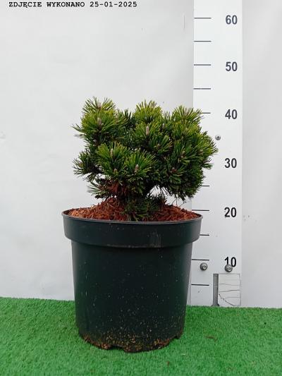 Karłowa sosna kosodrzewina o zwartym. kulistym pokroju. Posiada krótkie. ciemnozielone i błyszczące igły. Nadaje się na skalniaki i do ogrodów przydomowych.