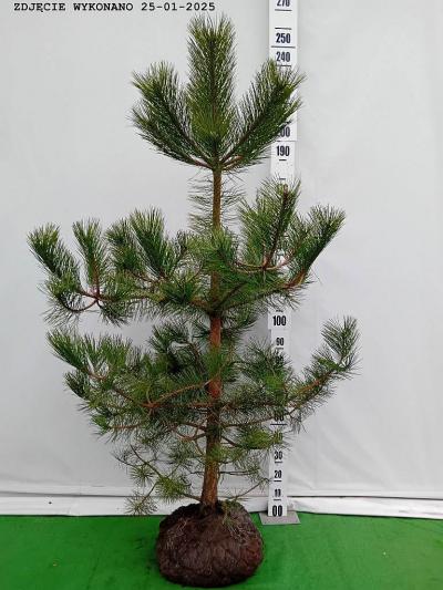 Sosna czarna początkowo o szerokostożkowym. a w starszym wieku parasolowatym pokroju. Wzrost 25-45 m wysokości. Posiada ciemnozielone. sztywne igły. skupione po 2 w pęczku oraz jasnnobrązowe szyszki. długości 7 cm. Dodatkowo starsze egzemplarze ozdobne w