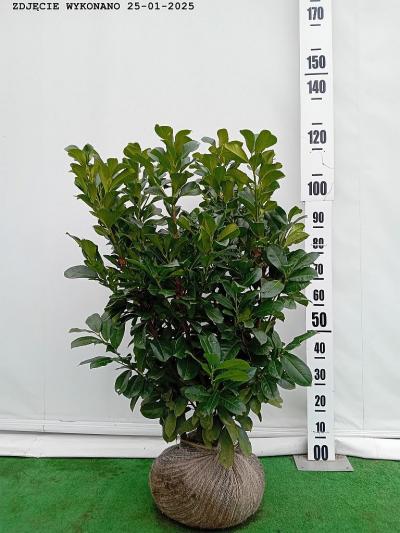 Zimozielona laurowiśnia wschodnia o wzniesionych pędach. Wzrost do 1.5 m wysokości. Posiada ciemnozielone. błyszczące. duże. szerokojajowate liście. Ozdobna w drobne. pachnące. białe kwiaty. zebrane w wyprostowane grona. a następnie małe. kuliste. czarne
