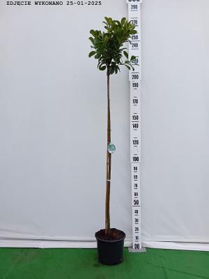 Zimozielona laurowiśnia wschodnia o wzniesionych pędach. Wzrost do 1.5 m wysokości. Posiada ciemnozielone. błyszczące. duże. szerokojajowate liście. Ozdobna w drobne. pachnące. białe kwiaty. zebrane w wyprostowane grona. a następnie małe. kuliste. czarne