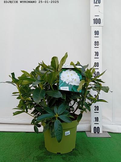 "Zimozielony różanecznik z rodziny wrzosowatych o zwartym pokroju przez cały okres wzrostu. charakteryzujący się ciemnozielonymi. skórzastymi liśćmi. Ozdobą różaneczników są przede wszystkim kwiaty. zebrane w obfite. wielobarwne kwiatostany na szczytach p