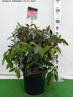 "Zimozielony różanecznik z rodziny wrzosowatych o zwartym pokroju przez cały okres wzrostu. charakteryzujący się ciemnozielonymi. skórzastymi liśćmi. Ozdobą różaneczników są przede wszystkim kwiaty. zebrane w obfite. wielobarwne kwiatostany na szczytach p