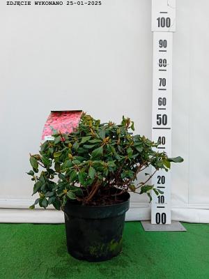 Różanecznik wielkokwiatowy z rodziny wrzosowatych. charakteryzujący się zimozielonymi liśćmi. barwy ciemnozielonej. z wierzchu błyszczącymi oraz dużymi dzwonkowatymi kwiatami. Polecany do różnego rodzaju nasadzeń. jako ciekawy akcent kolorystyczny podczas