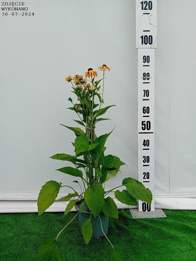 okazała bylina. dorastająca do 0.6 m wys. największą ozdobą są niezwykle liczne. żółte kwiaty z czarnym środkiem obfite kwitnienie