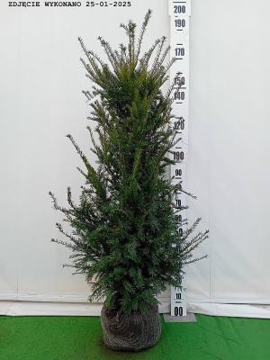 Wolnorosnący cis pospolity w formie dużego krzewu lub drzewa. Posiada pędy pokryte ciemnozielonymi igłami. ułożonymi grzebieniasto. Po 30 latach dorasta do ok. 4 m wysokości. Dodatkową ozdobą są czerwone owoce. ale tylko u żeńskich okazów. Doskonały na ży