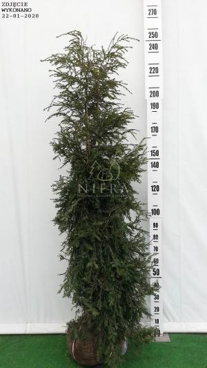 Wolnorosnąca choina kanadyjska o szerokostożkowatym pokroju. Dorasta po 30 latach do 10 m wysokości. Ozdobna w cienkie. przewisające pędy. pokryte krótkimi. ciemnozielonymi igłami. Polecana do pojedynczych nasadzeń w eksponowanych miejscach. nad zbiorniki