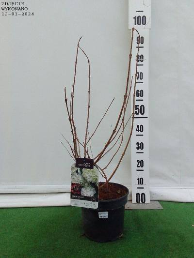 krzew o kulistym pokroju kwiatostany kuliste. zbite. złożone z białych. płonnych kwiatów