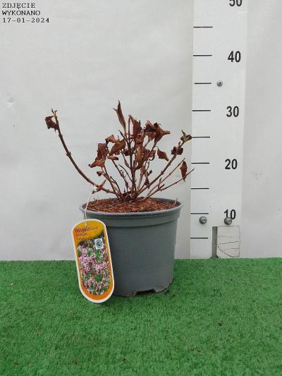 niski. gęsty krzew. osiągający 1 m wys. kwitnie niezwykle obficie na różowo