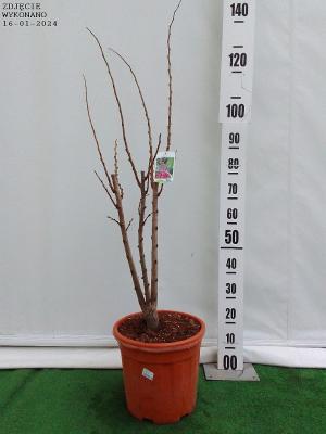 wysoki krzew o wzniesionym pokroju i sztywnych. wyprostowanych pędach kwitnie bardzo intensywnie na różowo