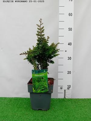Zimozielony cyprys o szerokostożkowym pokroju. Po 10 latach osiąga 1.5 m wysokości. Posiada łuskowate. zielone ulistnienie. Doskonały do pojedynczych nasadzeń. na wrzosowiska i do ogrodów japońskich.