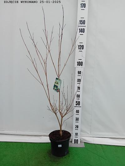 Wolnorosnący dereń. ozdobny w zielone liście. jesienią przebarwiające się na karmazynowopurpurowy kolor oraz białe z czteropłatkowymi przysadkami kwiaty. Dodatkową ozdobą są kulisto-owalne. czerwone. jadalne owoce. podobne do owoców malin. Polecany do nas