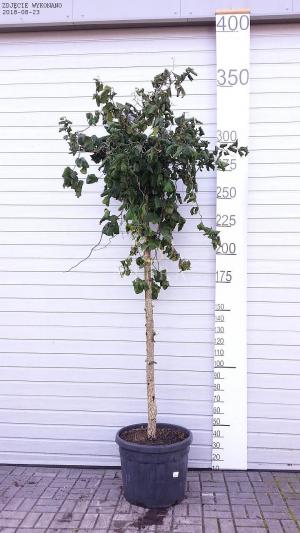 Leszczyna z parasolowatą koroną. Ozdobna w mocno skręcone w korkociąg gałęzie oraz różnego kształtu pozwijane liście. Dekoracyjne są również kwiaty-bazie oraz nieliczne owoce w postaci orzechów laskowych. Wzrost do 5 m wysokości. Polecna do pojedynczych n