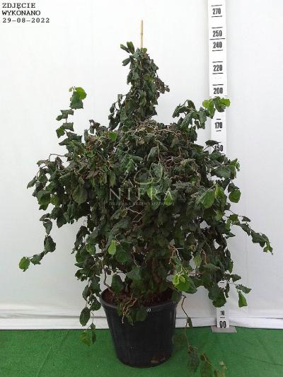 Leszczyna z parasolowatą koroną. Ozdobna w mocno skręcone w korkociąg gałęzie oraz różnego kształtu pozwijane liście. Dekoracyjne są również kwiaty-bazie oraz nieliczne owoce w postaci orzechów laskowych. Wzrost do 5 m wysokości. Polecna do pojedynczych n