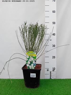 Żarnowiec miotlasty. gęsty i wyprostowany z przewisającymi z wiekiem pędami. Dorasta do ok. 1.5 m wysokości. Ozdobiony licznymi motylkowatymi kwiatami.