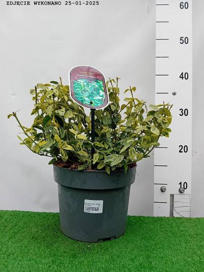 Zimozielona trzmielina o zwartej. niskiej formie i płożących się żółtych pędach. Ozdobna w zielone liście z białokremowożółtymi plamkami. Polecana do małych ogrodów i pojemników oraz jako roślina okrywowa.