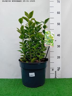 Zimozielona trzmielina dorastająca do 1.5 m wysokości i 1 m szerokości. Ozdobna w skórzaste. zielone. z nieregularnym żółtym wybarwieniem liście. Szczególnie polecana do małych okrodów i pojemników.