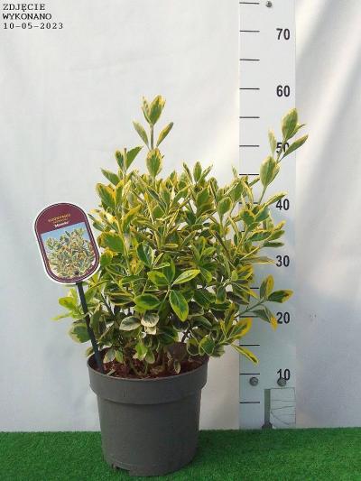 Zimozielona trzmielina o krzaczastym pokroju. Wzrost do 0.8 m wysokości po 10-15 latach. Ozdobna w zielonożółte liście. Polecana do ogrodów przydomowych. na skalniaki oraz do uprawy pojemnikowej na balkony i tarasy.