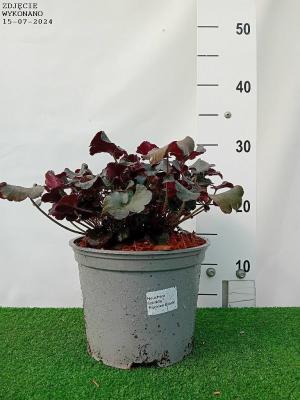 żurawka 'Rockies Black' - liście ciemne. czarno - zielone kwiaty biało - różowe