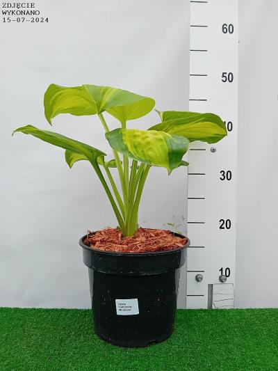 funkia 'Cathedral Windows' - liście zielone z żółtym zabarwieniem po środku liścia dorasta do 0.5 m