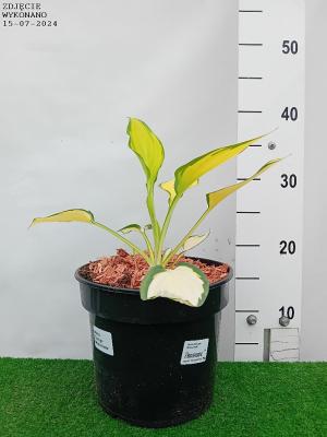 funkia 'Orange Marmolade' - liście miodowo - żółte z zielonym. nieregularnym brzegiem liścia