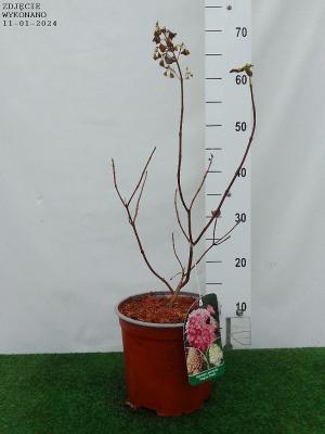 krzew dorastający do 2 m wys. gęste kwiatostany są początkowo zielonobiałe. później różowieją