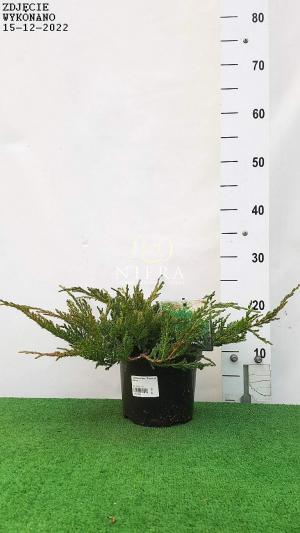 Zimozielony.wolnorosnący i bardzo niski jałowiec o płożącym pokroju. Ozdobny w sztywne. zielone pędy. Wzrost do 0.1 m wysokości przy 1.5 m średnicy. Idealny do małych ogrodów jako roślina okrywowa.