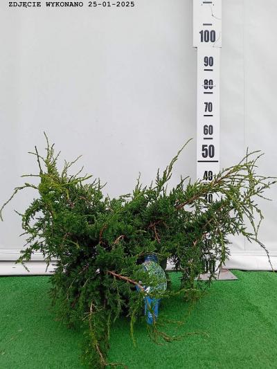Zimozielony.niski jałowiec o krzaczastej formie. Ozdobny w srebrzystoniebieskie igiełkowe ulistnienie. wiosną złocistożółte. Wzrost do 0.5 m wysokości przy 1 m średnicy. Najlepszy na skalniaki i wrzosowiska.