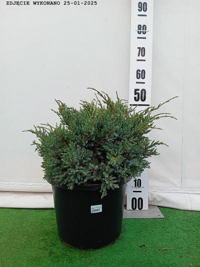 Zimozielony.niski jałowiec o krzaczastej formie. Ozdobny w srebrzystoniebieskie igiełkowe ulistnienie. wiosną złocistożółte. Wzrost do 0.5 m wysokości przy 1 m średnicy. Najlepszy na skalniaki i wrzosowiska.