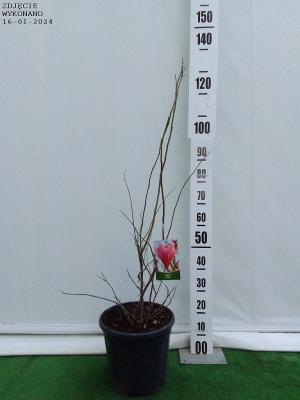 bardzo wcześnie kwitnący krzew lub małe drzewo o bardzo dużych. purpurowo-czerwonych kwiatach