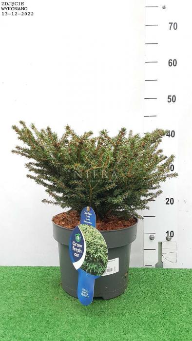 Karłowy świerk pospolity o płaskokulistym kształcie. Osiąga 1.5 m średnicy przy 1 m wysokości. Ozdobny w cienkie. giętkie pędy i zielone. krótkie. miękkie igły. Polecany na wrzosowiska. skalniaki. do pojemników i małych ogrodów.