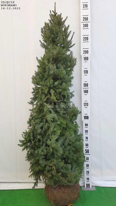 Świerk serbski o stożkowym pokroju i wszechstronnym zastosowaniu. Dorasta do 20 m wysokści. Posiada krótkie. zwisające boczne gałęzie oraz błyszczące. ciemnozielone igły. od spodu niebieskawobiałe z dwoma białymi paskami. gęsto ułożone na pędach. Ozdobny