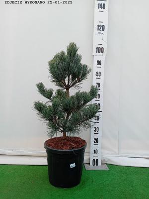 Sosna koreańska o piramidalnym pokroju i zwartej. wąskiej koronie. Wzrost do ok. 10 m wysokości. Posiada długie. niebieskosrebrne igły. zebrane w pęczkach po 5. Polecana do kompozycji i pojedynczych nasadzeń.