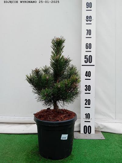 Wolnorosnąca sosna kosodrzewina o początkowo kulistej. a w starszym wieku stożkowej formie. Po 10 latach osiąga ok. 1 m średnicy. Posiada podwójne. ciemnozielone i błyszczące igły. Doskonała na skalniaki. wrzosowiska i do uprawy pojemnikowej.