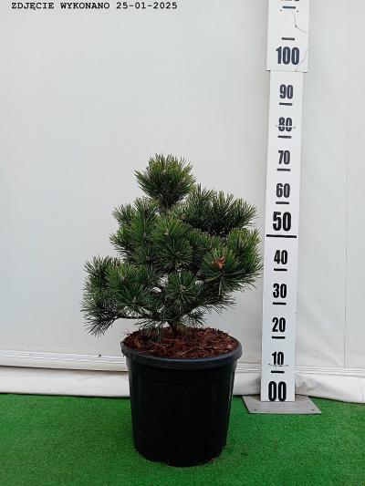 Wolnorosnąca sosna kosodrzewina o początkowo kulistej. a w starszym wieku stożkowej formie. Po 10 latach osiąga ok. 1 m średnicy. Posiada podwójne. ciemnozielone i błyszczące igły. Doskonała na skalniaki. wrzosowiska i do uprawy pojemnikowej.