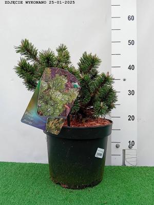 Bardzo wolnorosnąca sosna kosodrzewina o krzaczastym pokroju. Po 10 latach dorasta do 0.3 m wyskości i 0.5 m szerokości. Posiada krótkie. ciemnozielone igły. zebrane po dwie na pędzie. Polecana na skalniaki i do alpinariów.