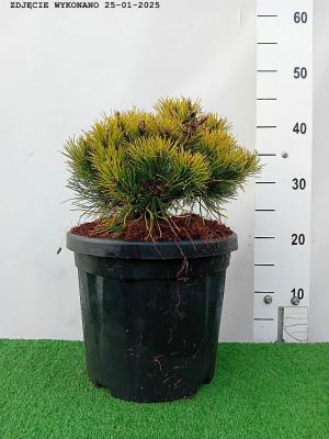 Karłowa sosna kosodrzewina o krzaczastym pokroju. Po 10 latach dorasta do 0.5 m wysokości i 1 m szerokości. Posiada zielone igły. zebrane po dwie. które na zimę zmieniają barwę na żółtopomarańczowe. Polecana na skalniaki i wrzosowiska oraz do uprawy pojem