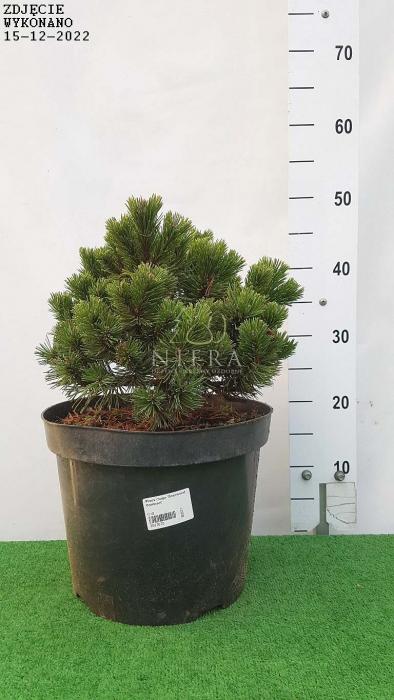 Karłowa sosna kosodrzewina o zwartym. kulistym pokroju. Posiada krótkie. ciemnozielone i błyszczące igły. Nadaje się na skalniaki i do ogrodów przydomowych.