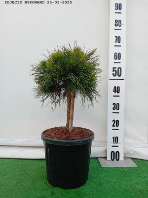 Wolnorosnąca sosna kosodrzewina o gęstym. kulistym pokroju. Po 10 latach dorasta do 0.7 m szerokości. Posiada proste. ciemnozielone igły. Latem na pędach pojawiają się dekoracyjne drugie przyrosty w kształcie pędzelków. Nadaje się na skalniaki i wrzosowis