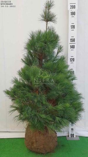 Szybkorosnąca sosna wejmutka o regularnym. stożkowatym pokroju. Wzrost po 30 latach ok. 15 wysokości. Posiada cienkie. sinozielone igły. zebrane po 5. Polecana do dużych ogrodów i parków.