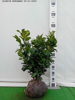 Zimozielona laurowiśnia wschodnia o wzniesionych pędach. Wzrost do 1.5 m wysokości. Posiada ciemnozielone. błyszczące. duże. szerokojajowate liście. Ozdobna w drobne. pachnące. białe kwiaty. zebrane w wyprostowane grona. a następnie małe. kuliste. czarne